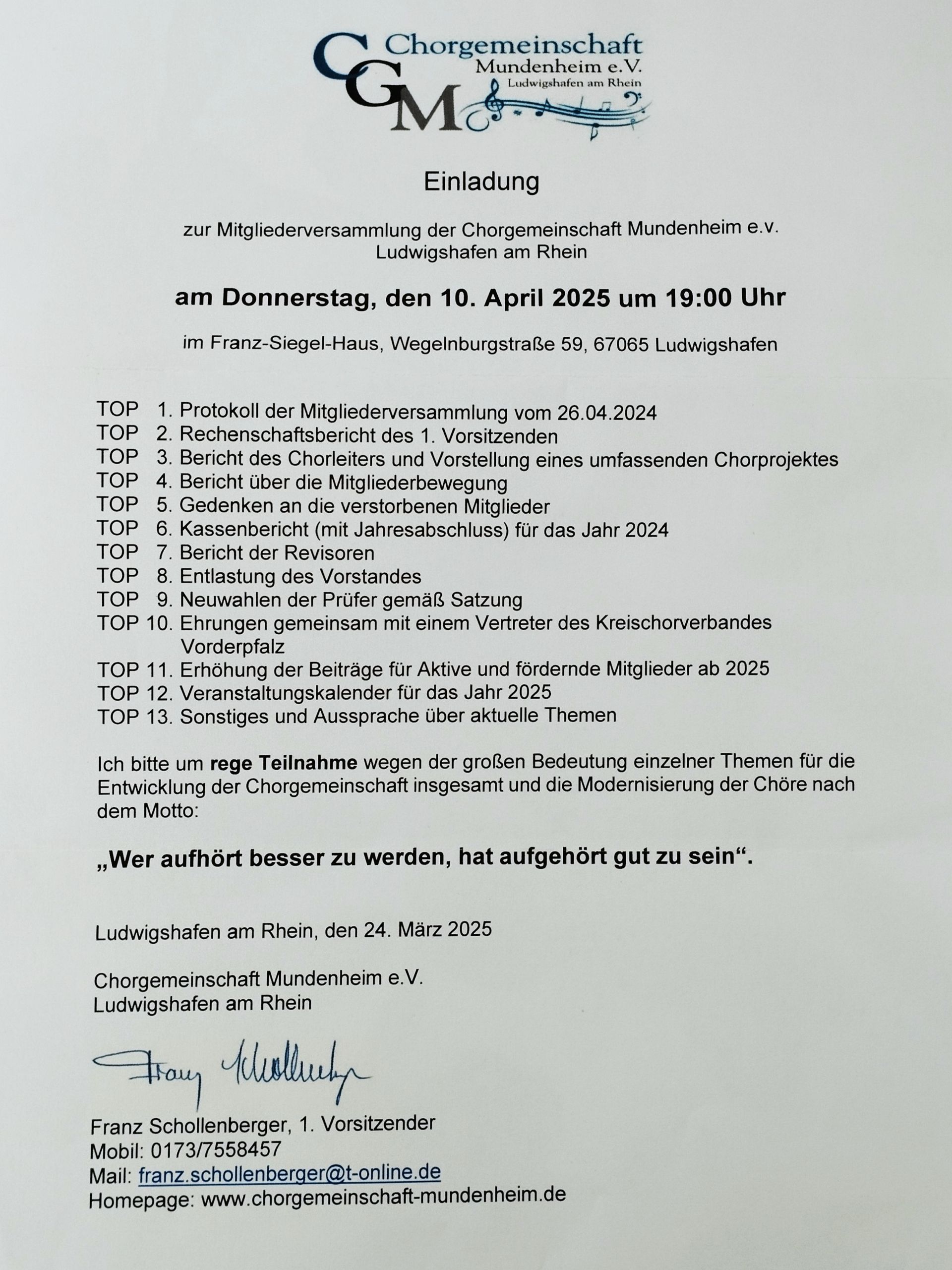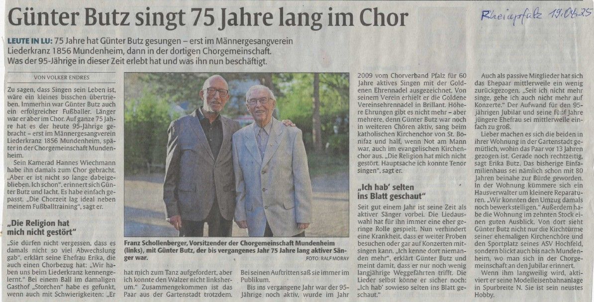 1. Vorsitzender Chorgemeinschaft Mundenheim
