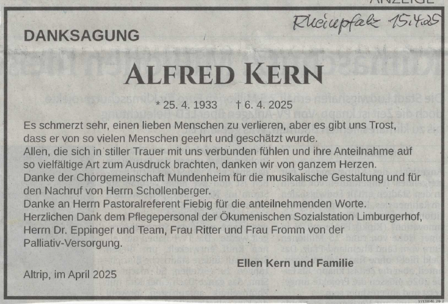 Nachruf anlässlich der Trauerfeier für Alfred Kern